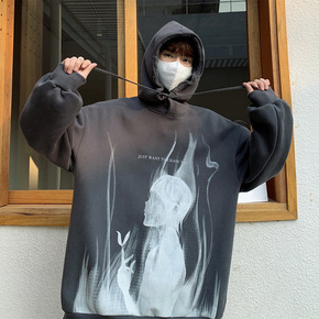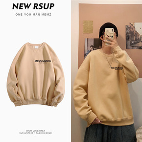秋冬季新款ins港风男生加绒卫衣休闲宽松套头学生百...