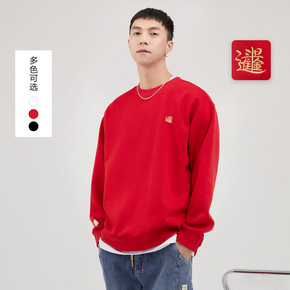 亦止男装2022春秋新款本命年卫衣男圆领招财进宝红...
