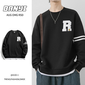 卫衣男假两件毛巾绣潮牌上衣港风套头2022新款春季...