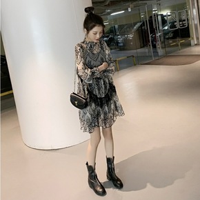 长袖碎花连衣裙女春季复古韩版宽松收腰显瘦温柔内搭v...