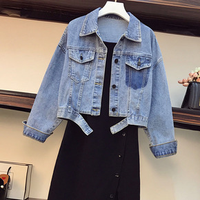 春装2022年新款大码女装牛仔外套两件套胖妹妹显瘦...