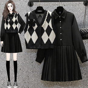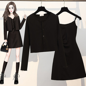 大码女装2022春装新款洋气马甲连衣裙两件套胖妹妹...