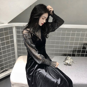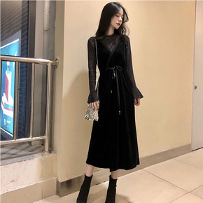 高级感红色针织连衣裙秋冬装法式复古打底裙内搭毛衣长...