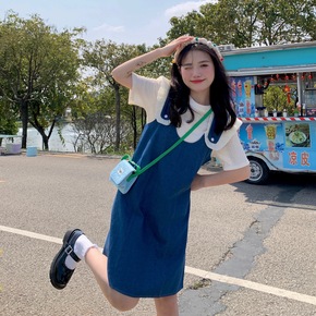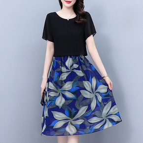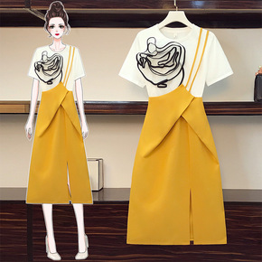 大码女装2022夏季新款微胖妹妹连衣裙时尚显瘦t恤...