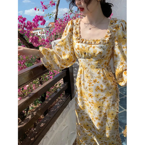 2022春装新款轻熟风法式轻奢高级感小众碎花连衣裙...