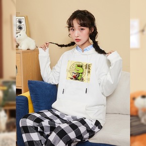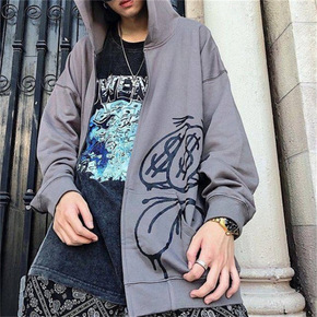 速卖通wish秋冬款女士时尚潮流印花宽松版连帽开衫...