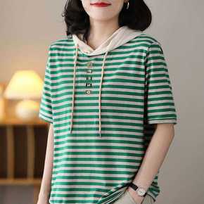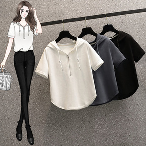 连帽衫短袖T恤大码女装夏季潮搭时尚韩版宽松遮肉休闲...