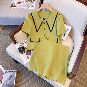 2022夏装新品胖妹妹大码韩版时尚设计感娃娃领上衣...