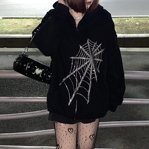 跨境秋冬新款韩版盐系外套宽松大码连帽加绒加厚字母刺...