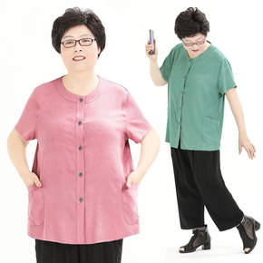 夏季新品中老年女士特大宽松休闲纯色提花开衫短袖衬衫...