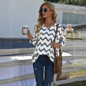 G140条纹上衣长袖T恤女...
