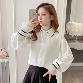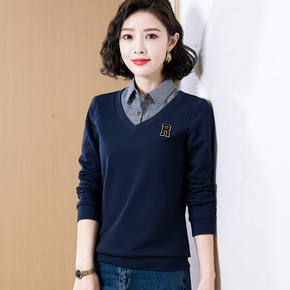 2021早秋韩版新款慵懒风宽松显瘦上衣百搭假两件白...
