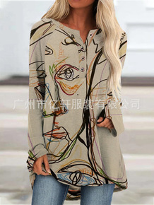 2021秋季新款wish亚马逊欧美外贸女装长袖印花...