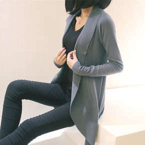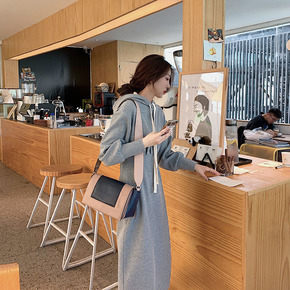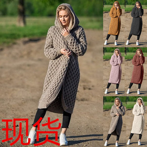 1942冬季保暖新款时尚女装长款针织毛衣连帽开衫外...
