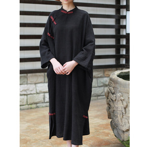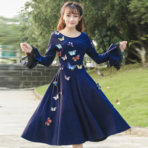 春秋冬呢子弹力文艺范连衣裙轻舞飞扬手工蝴蝶修身复古...