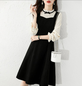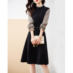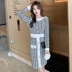 秋季新款法式复古轻熟赫本风炸街针织衫千鸟格连衣裙两...