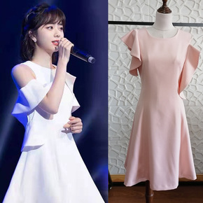 明星同款2021夏季新款名媛气质白色连衣裙女露肩纯...