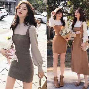 丝绒冬款裙子秋冬2021新款冬季子学生韩版毛衣...