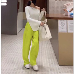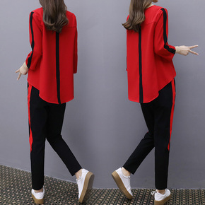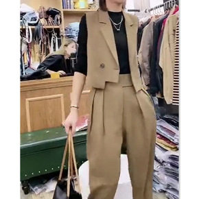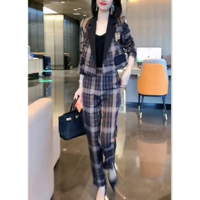 秋冬新款女装单排扣纯色小西装高腰束脚裤休闲套装女...