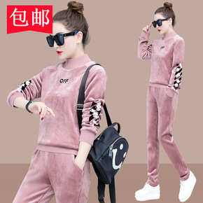 金丝绒运动套装女2021秋季新款时尚宽松长袖休闲服...