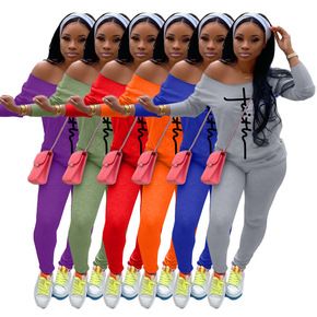 AL116 亚马逊独立站欧美女装卫衣纯色两件套装加...