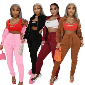 金丝绒套装女 2021春秋季新款时尚休闲卫衣三件套...