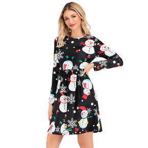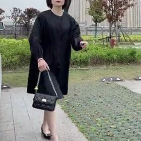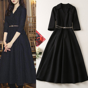 9888大爱美依缘2021秋季新款黑色连衣裙圆领长...
