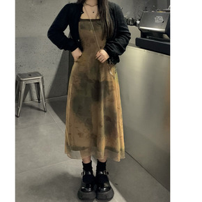2021春装新款丝绒连衣裙 名媛气质网纱修身显瘦长...