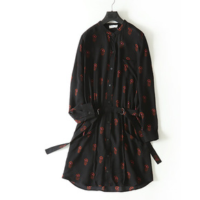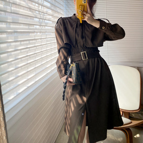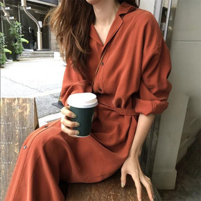 1119春秋新款韩版宽松显瘦气质收腰系带连衣裙女休...