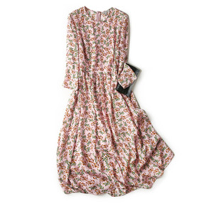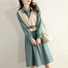 早秋假两件碎花长袖连衣裙女2021新款春秋收腰显瘦...