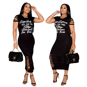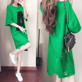 裙子女夏季2021年新款宽松显瘦破洞中长款百搭减龄...