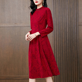 跨境连衣裙2021秋冬新款丝绒名媛气质女装时尚修身...