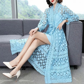 2021秋季新款女装V领镂空系带收腰气质时尚长袖A...