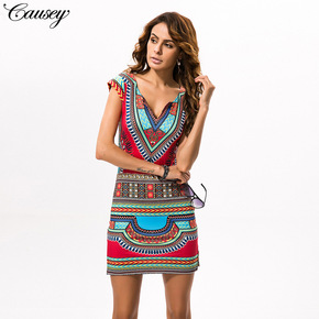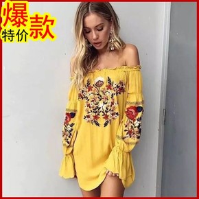 2018新款欧洲站女装飞飞袖V领露背纯色长裙 欧美...
