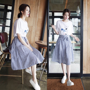 批发2018夏季新款韩版A字裙子两件套学生连衣裙套...