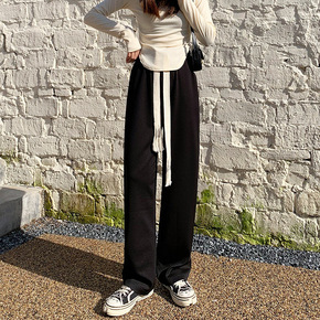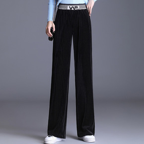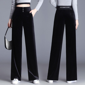阔腿裤女春秋季2021新款高腰垂感宽松直筒雪尼尔休...