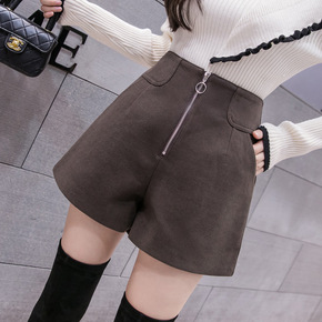 高腰宽松显瘦外穿PU皮短裤女2021秋冬新款韩版设...