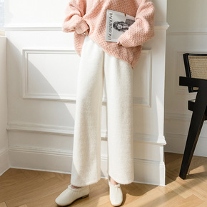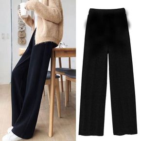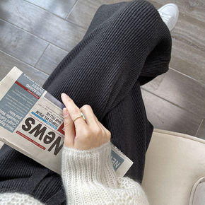 秋冬新款羊绒针织阔腿裤女宽松休闲韩版羊毛长裤高腰女...