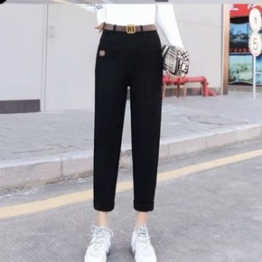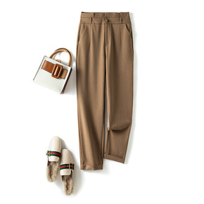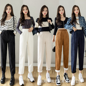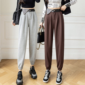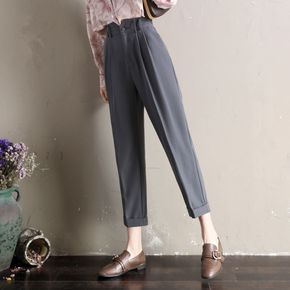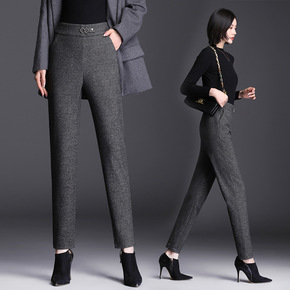 毛呢哈伦裤女小脚休闲裤子女秋冬新款2021韩版高腰...