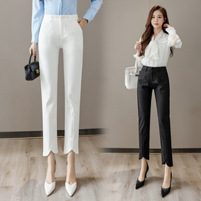 修身休闲西装裤女春秋新款高腰显瘦九分小脚黑色女裤设...