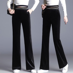 实拍两侧贴钻高腰黑色丝绒阔腿裤女2021秋冬韩版显...