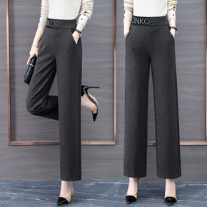 2021秋冬新款拉链高腰宽松阔腿裤百搭靴裤显瘦毛呢...