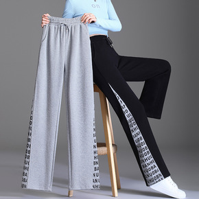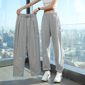 2021新款灰色运动裤女秋季直筒宽松休闲高街束脚卫...