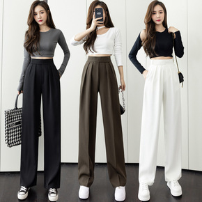 西装裤女直筒宽松2021春秋新款高腰垂感休闲哈伦裤...