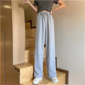 灰色运动裤女宽松直筒高腰垂感夏春秋薄款卫裤显瘦百搭...