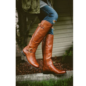 2018秋冬季新款皮带扣长筒骑士靴女平跟秋靴高筒靴...