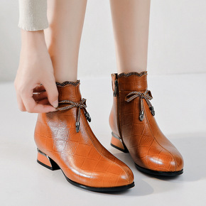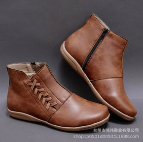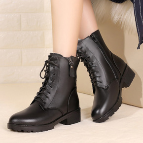 大码马丁靴女真皮亚马逊wish跨境欧美女式马丁靴头...