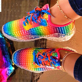 飞织女鞋欧美新款透气运动鞋休闲网面跑步鞋女大码43...