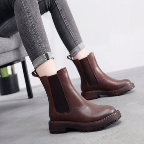 马丁靴女2020新款时装靴粗跟加厚粗腿大筒围短靴加...