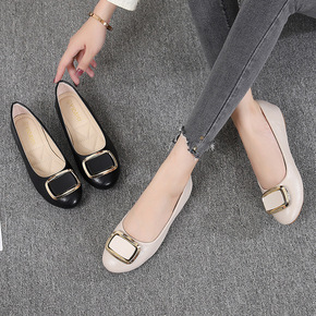 2020年新款春季韩版平底鞋方头豆豆鞋软底妈妈鞋大...